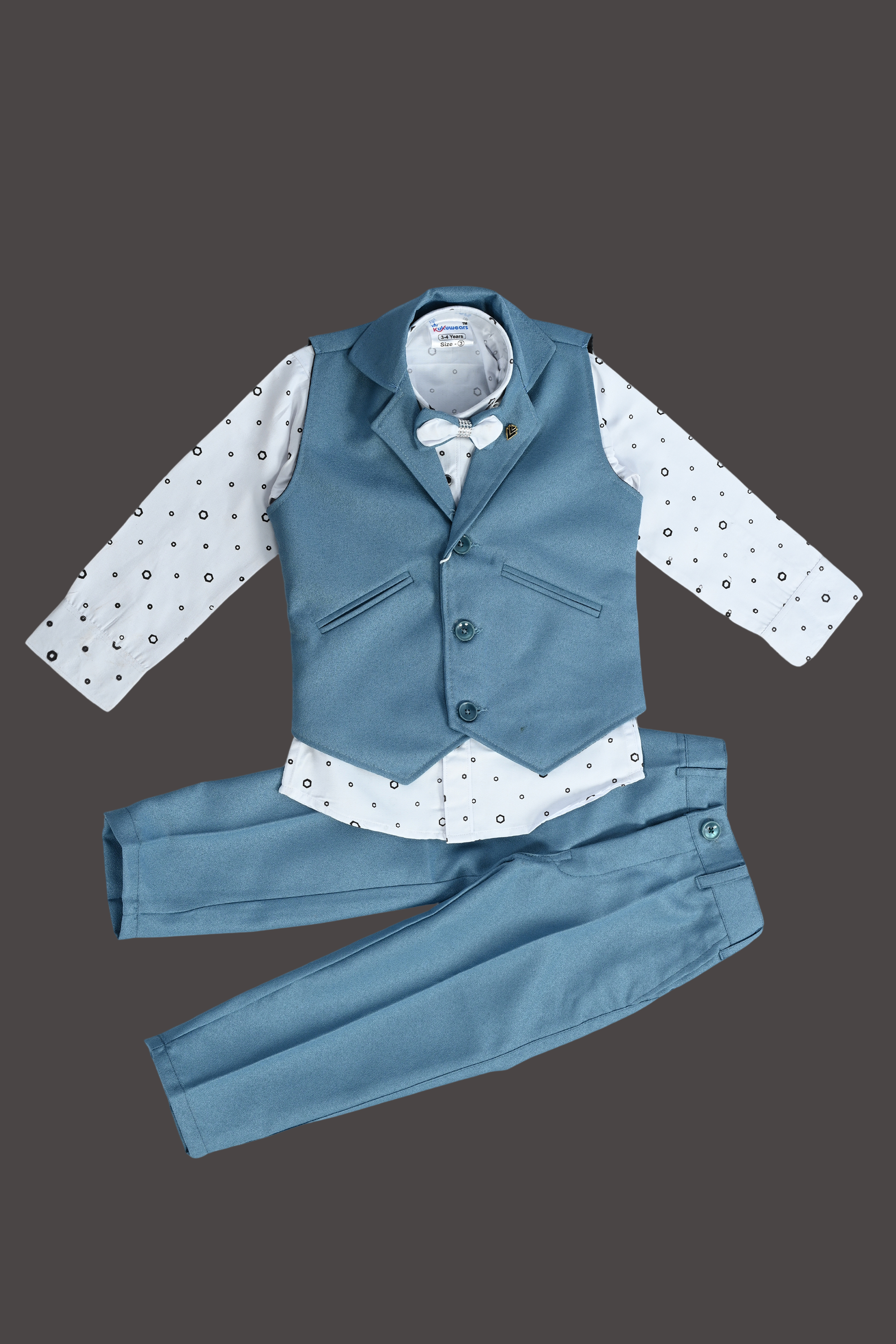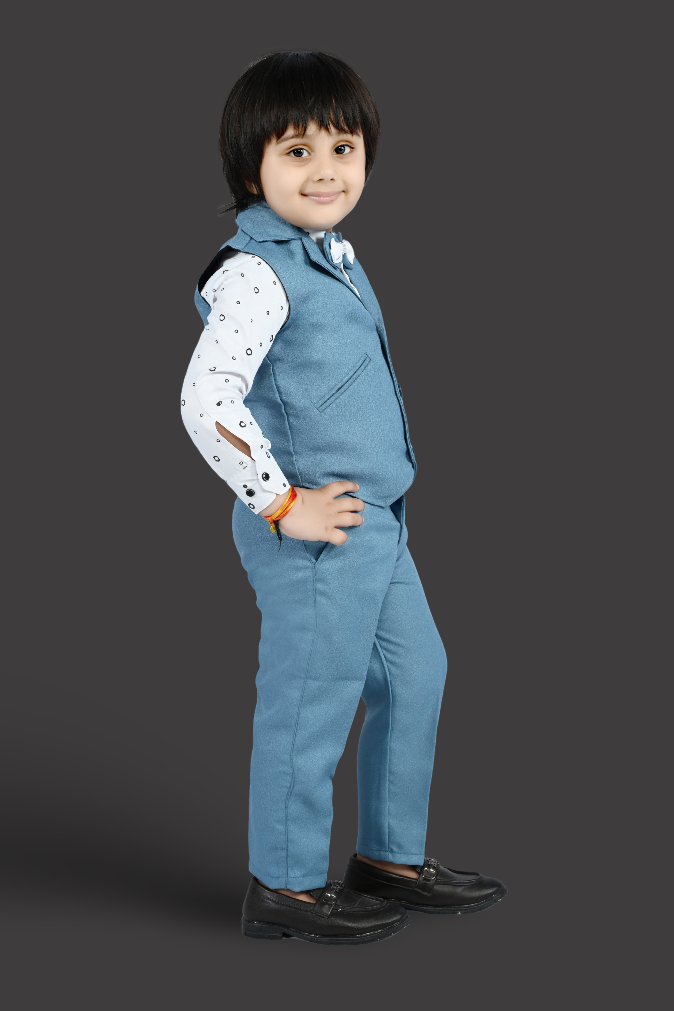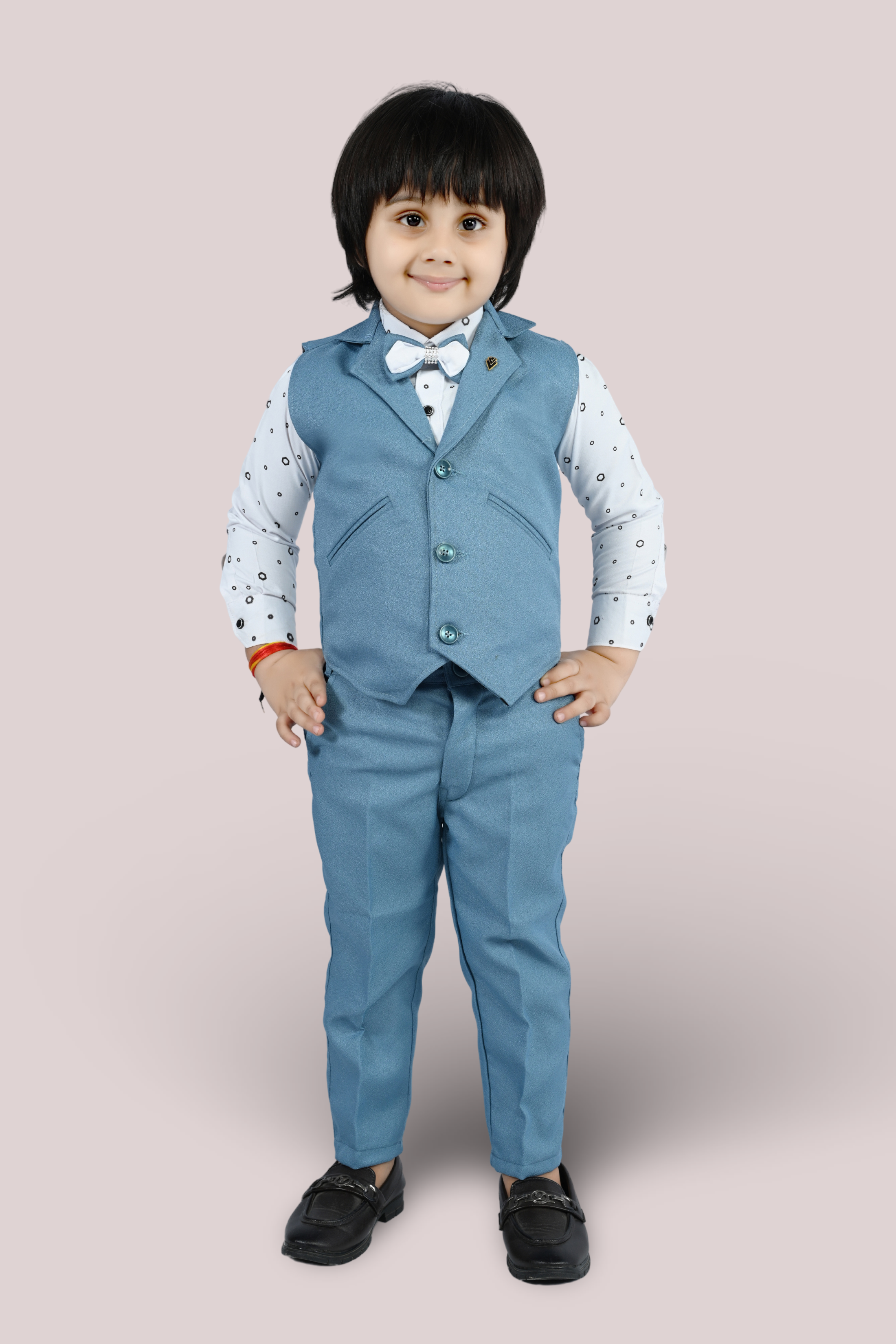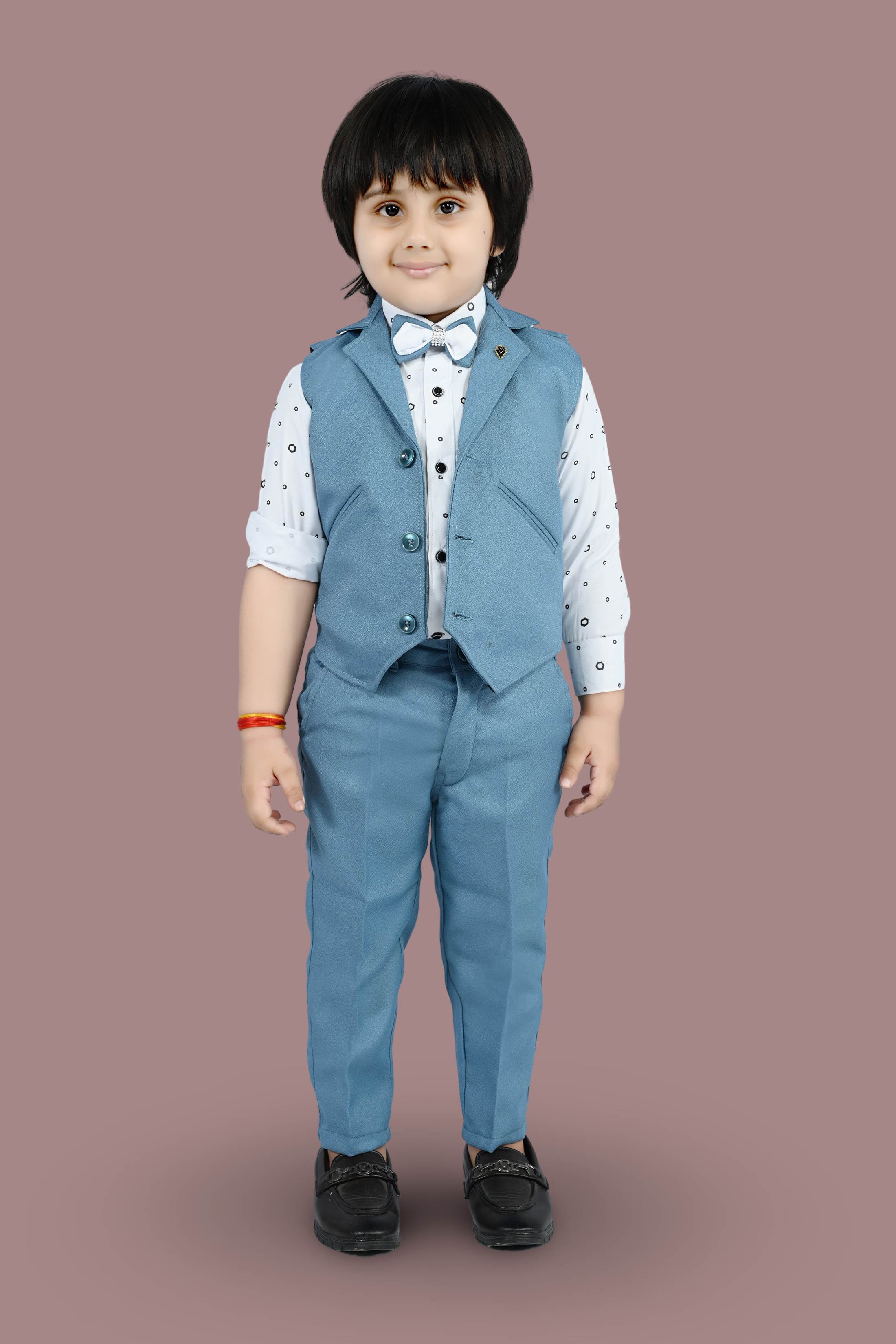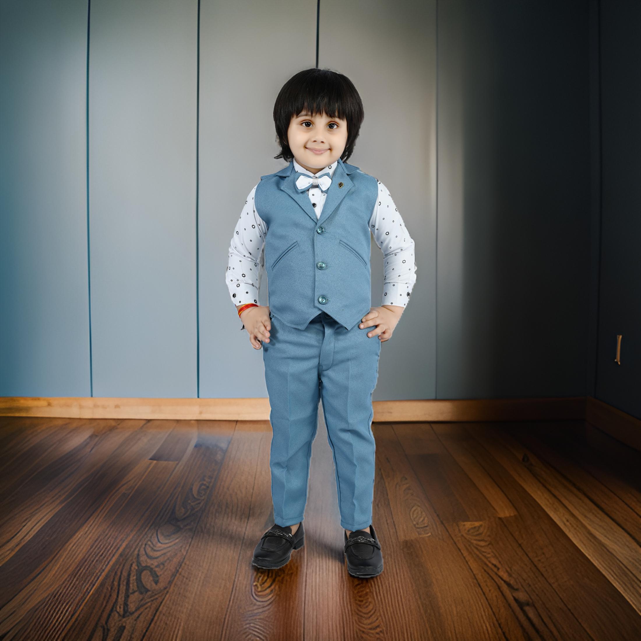 THIS ARTICAL is a formal ensemble suitable for young boys, blending traditional and modern styles. Here’s a description of the attire: