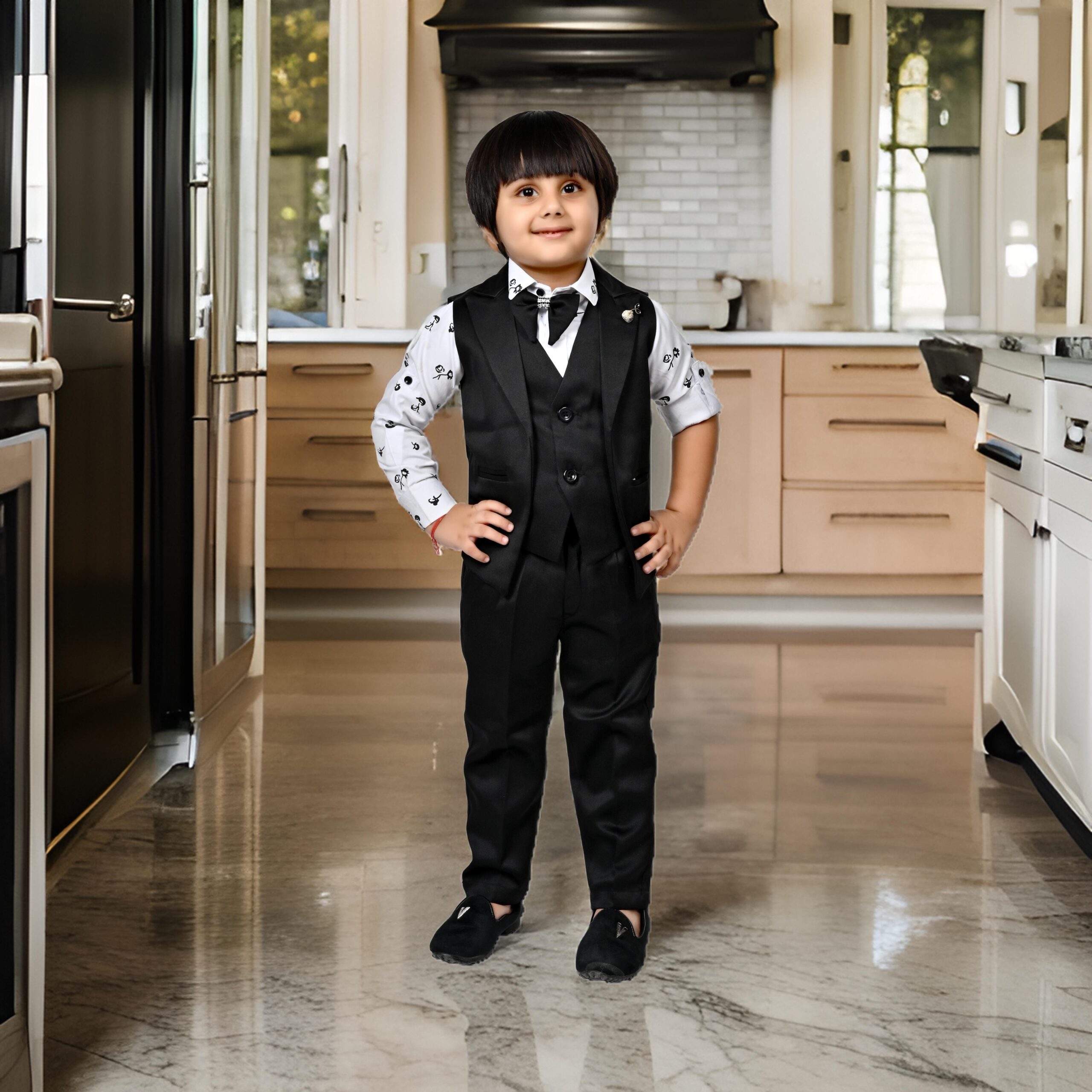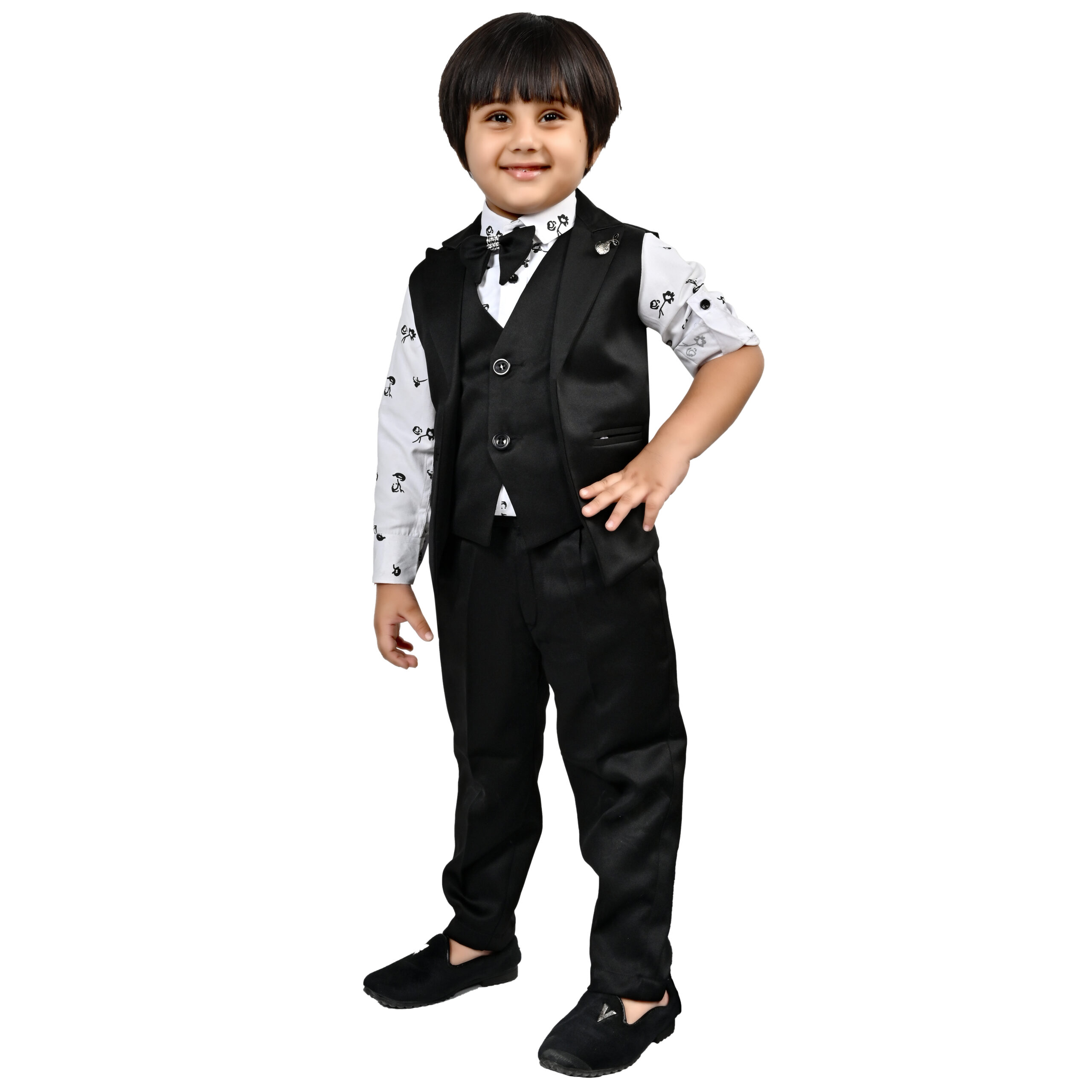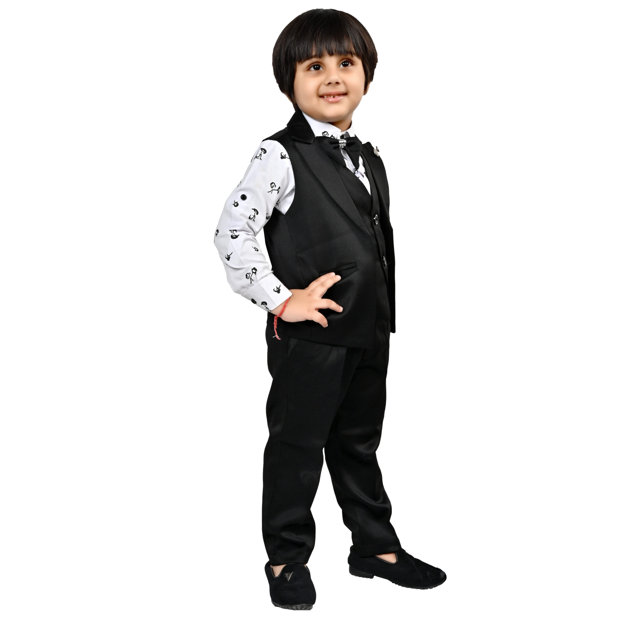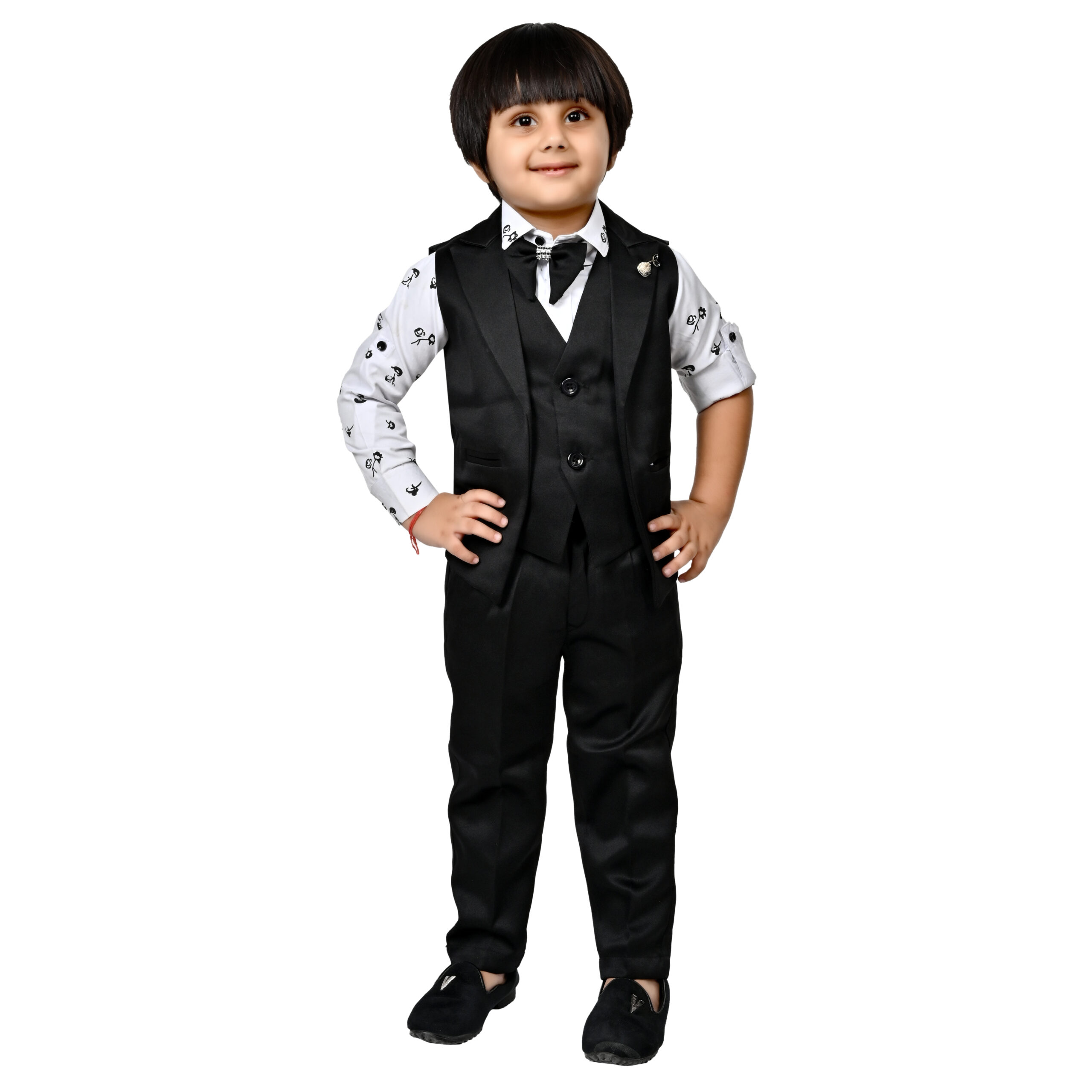 THIS ARTICAL is a formal ensemble suitable for young boys, blending traditional and modern styles. Here’s a description of the attire: